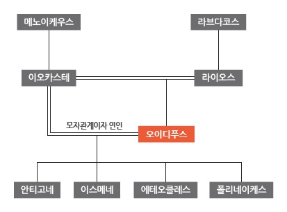 비극의 주인공 오이디푸스는 테베의 왕 라이오스와 이오카스테의 아들이다.