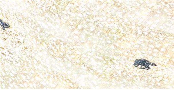 그 무렵, 늑대 무리도 어디론가 눈발 속에서 이동하고 있다.