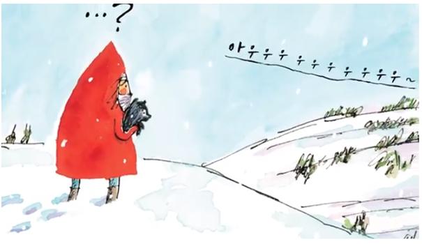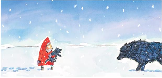 늑대를 만났을 때 소녀의 두려움, 엄마를 만난 새끼 늑대의 안도감, 자신을 구해준 인간을 도와주려는 새끼 늑대의 마음이 그림에서 고스란히 느껴진다. 마침내 소녀가 집으로 무사히 돌아와 가족들과 함께 따듯한 모닥불 앞에서 몸을 녹이는 모습은 가슴 뭉클하다.