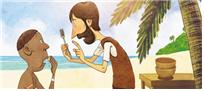 무인도에 정착한 지 15년쯤 지난 어느 날, 로빈슨은 다른 원시 부족에게 잡아먹히기 직전 도망쳐 나온 한 사내를 구해줍니다. 로빈슨이 그를 어떤 시선으로 바라보는지 한번 살펴볼까요?