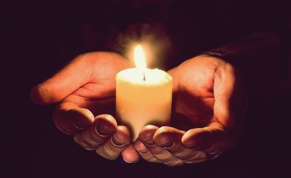 신께 청하며 촛불을 켜는 겨울밤