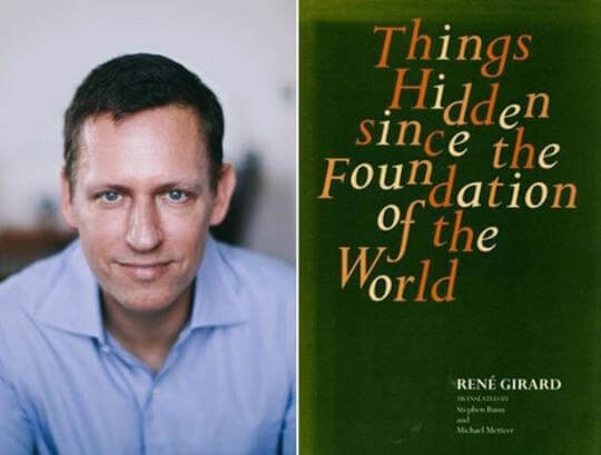 페이 팔(PayPal)을 창업하고 페이스북에 투자했던 피터 틸(Peter Thiel)은 <세상이 만들어질 때부터 숨겨온 것(Things Hidden since the Foundation of the World)>을 자신의 인생책으로 꼽았다. 프랑스 출신의 철학자이자 신학자인 르네 지라르(Rene Girard)가 인간의 욕망이 본원적인 것이 아니라 타인의 욕망을 모방하는 모방욕망이며 이런 욕망이 결국 인류의 원초적이고 집단적 폭력의 기원이 된다는 이론을 바탕으로 쓴 책이다.