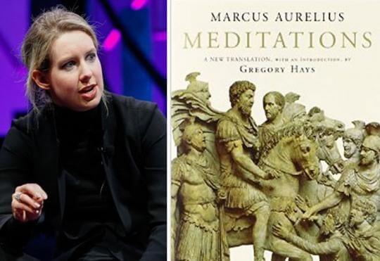 그렇지만 홈즈가 꼽는 인생 최고의 책은 마르쿠스 아우렐리우스의 <명상록(Meditations)>이다. 이 책은 로마의 아우렐리우스 황제의 자기성찰을 담고 있다. 스토아학파 철학자이면서 동시에 나라를 다스리는 황제였던 아우렐리우스의 고뇌가 잘 드러나있다. 스토아 철학자였던 그는 결국 ‘이성’으로서 사람은 불안함과 걱정 등의 감정을 극복할 수 있다고 주장한다. 이 책은 홈즈가 2002년 스탠포드 대학을 중퇴했을 당시 부모에게서 선물받은 것으로, "몇 번이나 이 책을 반복해서 읽었다"고 밝히기도 했다.
