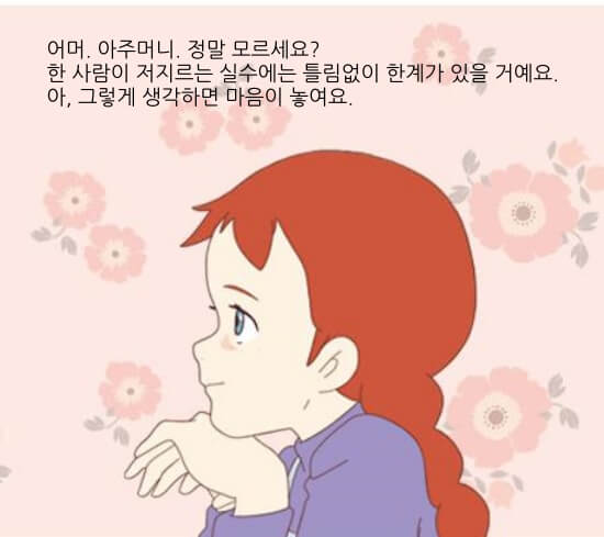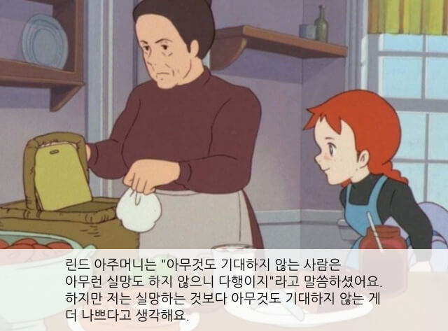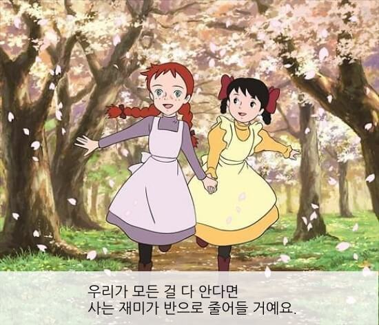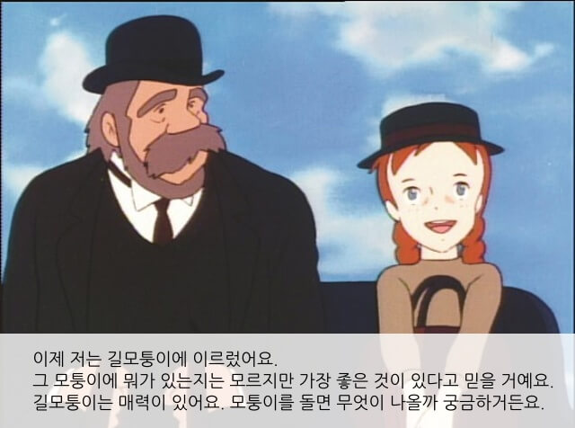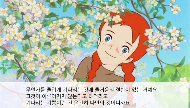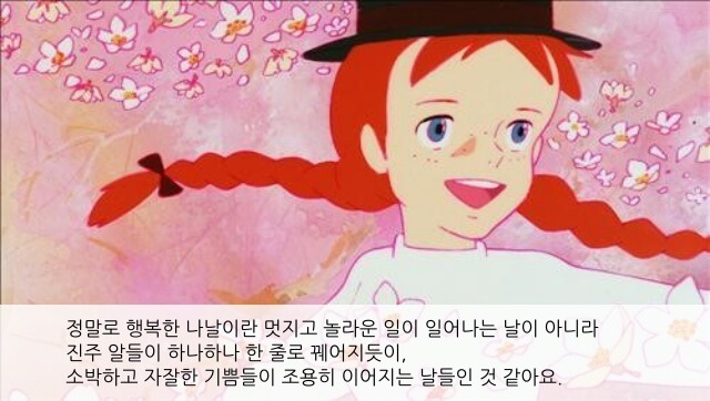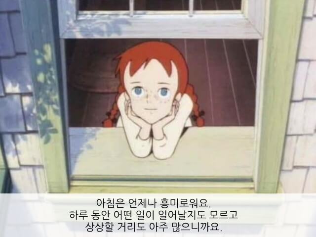 그럼에도 앤은 밝고 씩씩하게 힘든 상황을 극복하고 꿈에 도전합니다. 마릴라 아줌마는 앤이 상상력이 너무 풍부하고 말이 많은 것을 걱정했지만, 앤이 한 말 중에는 기억에 두면 좋은 말들이 많습니다. 그 중에서 10가지 명대사를 소개합니다.