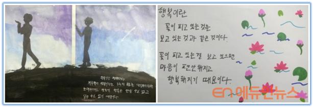 철학자들만 행복을 정의하는 것은 아니다. 학생들도 자신들의 삶과 세상의 문제에 대해 고민하고 자기 생각을 가지고 있기에 개념 정의를 할 수 있다. 이번에는 글과 그림으로 행복의 개념을 정의했다.